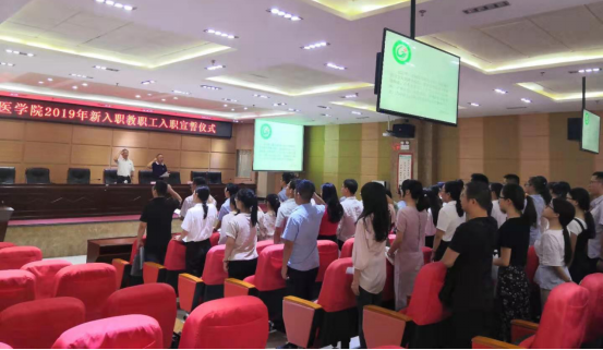 人事处处长黄春平同志带领全体新教师进行了庄严而神圣的宣誓。“我宣誓:忠诚党的教育事业,切实履行教书育人的神圣职责。做有理想信念、有道德情操、有扎实学识、有仁爱之心的人民教师;立德立行,求是求新,为赣医的美好明天,为办好人民满意的医科大学不懈奋斗!”
