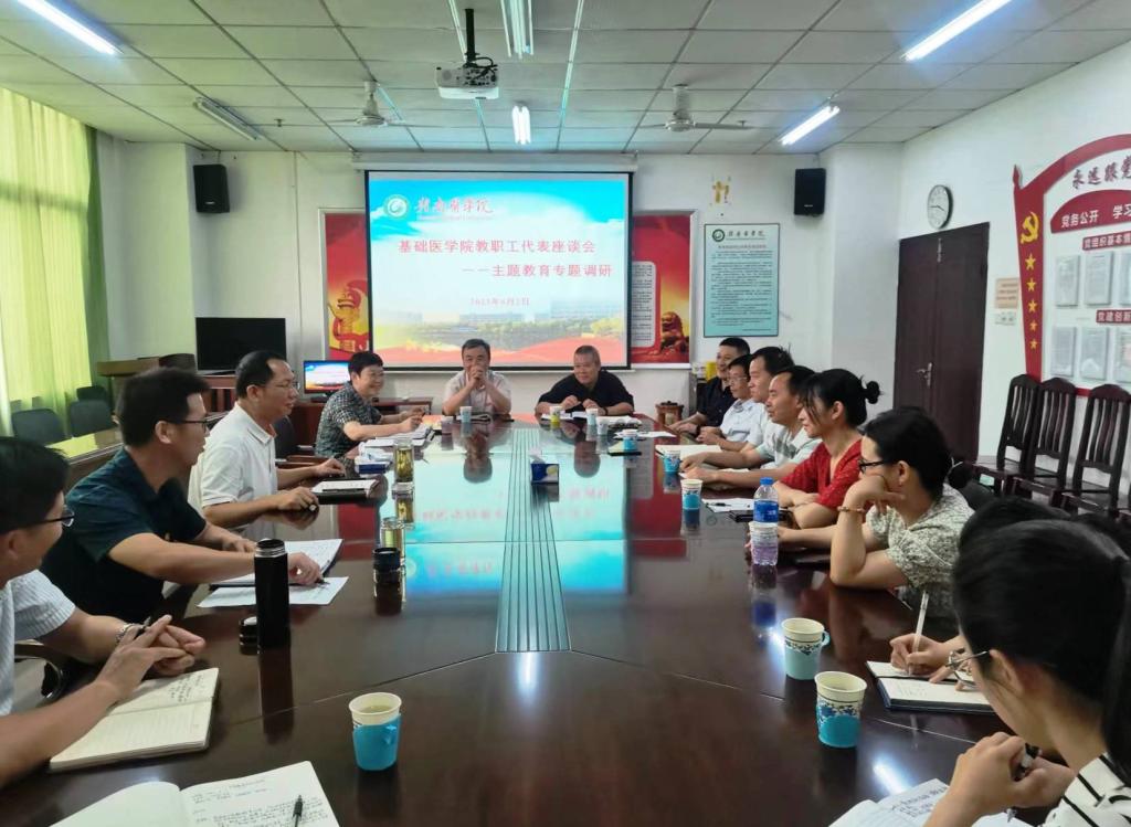 6月2日,学校党委委员、副校长黄瑞忠围绕“创新职称评价机制,激发人才发展活力”开展主题教育调研,分别与基础医学院和人文社会科学学院教职工召开教职工代表调研座谈会,听取教职工代表对职称评审工作的意见建议。人事处、相关学院教职工代表参加会议。